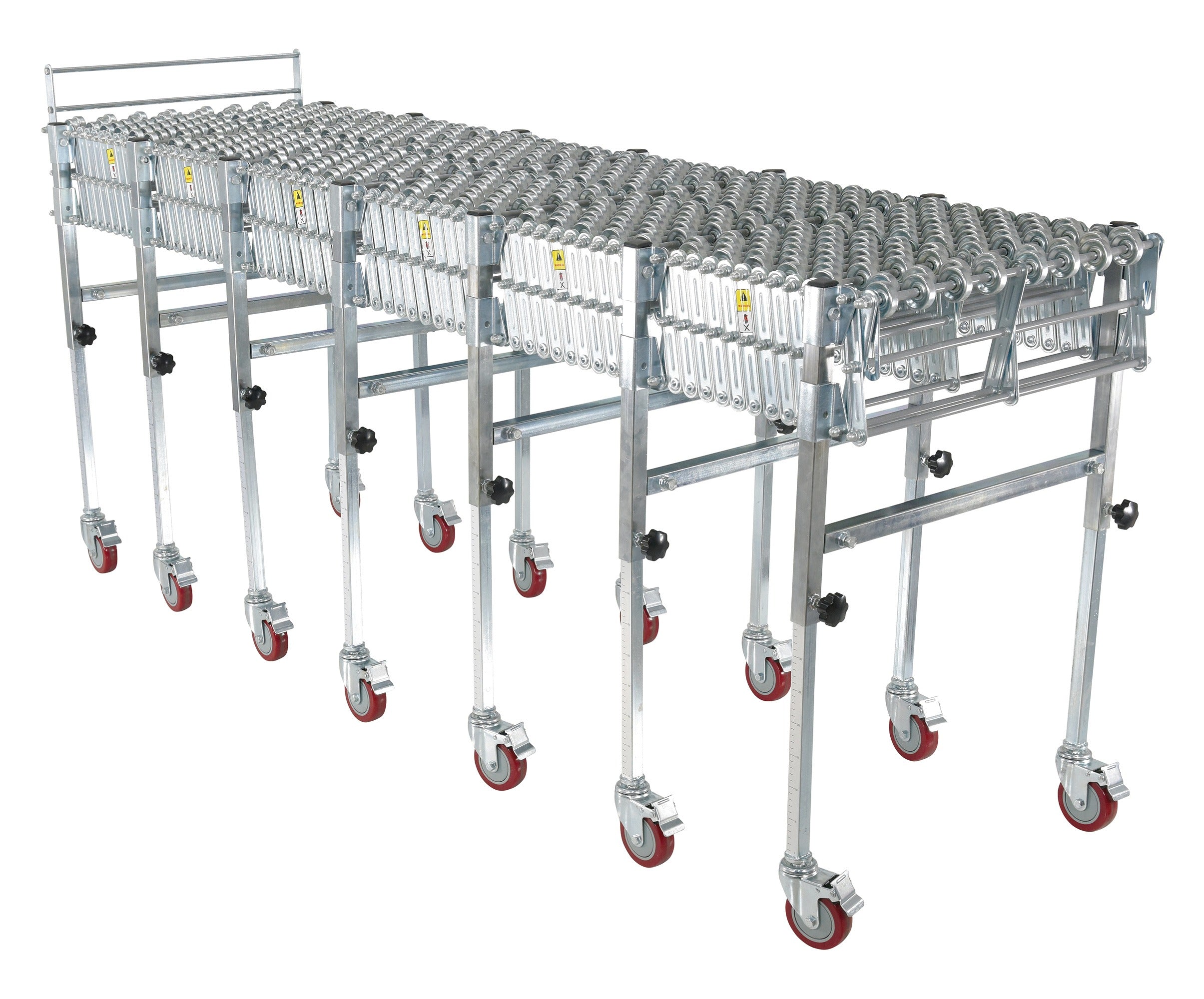 24"W Steel Roller Conveyor, Portable & Expandable, 8'9" to 32'4"L